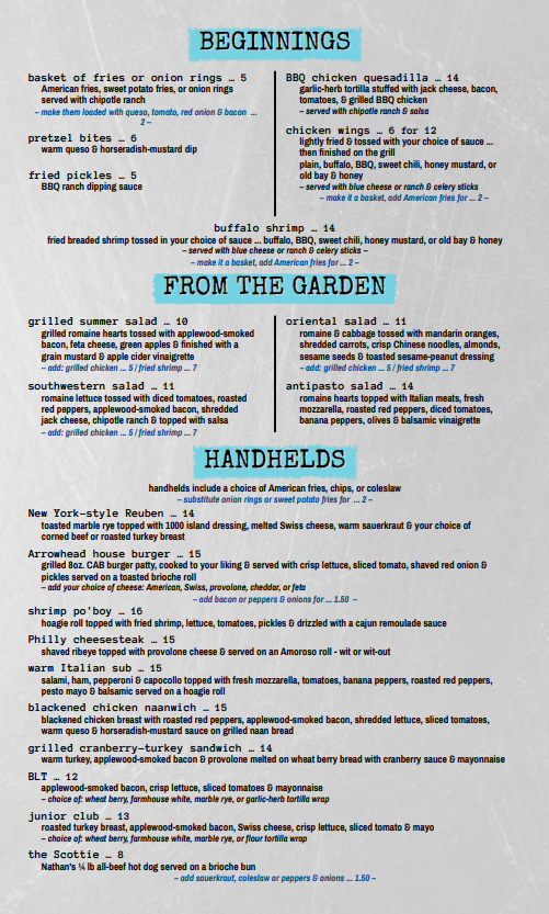 The Pub at ArrowHead Menu